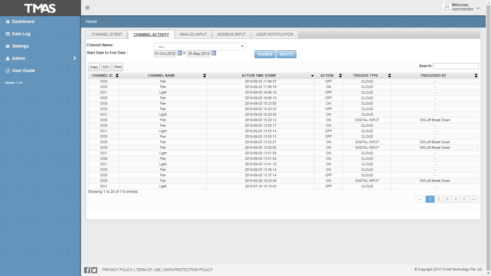 What is a TMAS Cloud ? The TMAS Cloud is a web-based service platform, supports TMAS Products. It provide a centrally managed station for device management, report management, user management, IP management, data routing, data storage, data analytic etc. TMAS Cloud allows viewing, controlling and configuring of devices parameter and data. The TMAS Cloud can be very scalable, to manage from a single remote device up to thousand over deployment. |